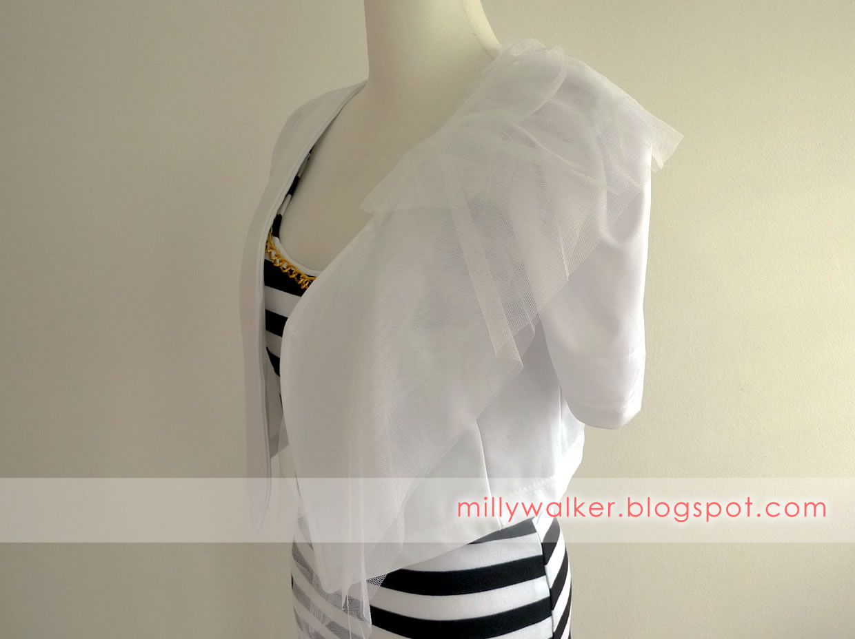 Get an edgy look with this Crop Mesh Jacket without overdoing it. The soft mesh at the side is eye catching yet not overwhelming. The mesh flows from front to back. Made of good quality material. Easy to match any outfit.